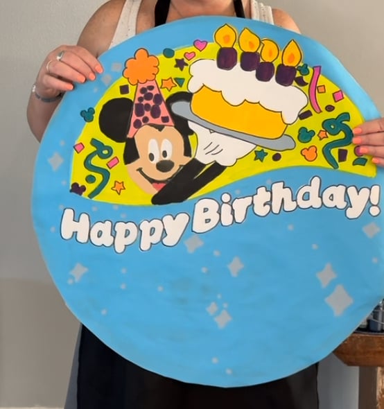 Inspired by the iconic celebration buttons for the parks, these banners are perfect for birthdays, first visits and any magical milestone. Each one is painted by hand with bright, whimsical details that bring the magic home (or to your resort)